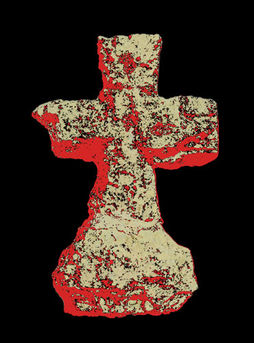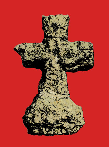 der warholartigen Bearbeitung der Kreuze ist ein Steinkreuz aus