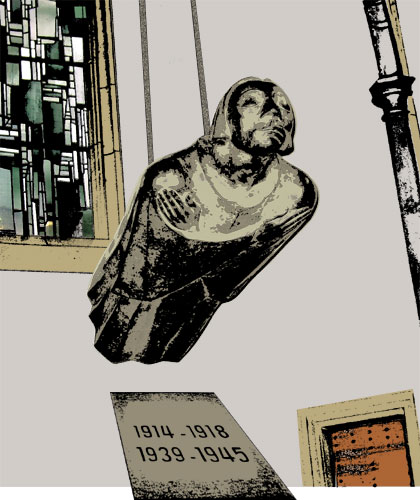 Es besteht aus Barlachs Schwebendem Engel und der Platte mit den Jahreszahlen
