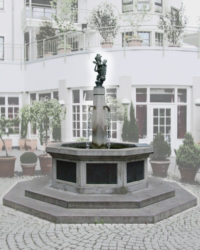 Erst diese Bearbeitung trennt den Brunnen vom sehr lebhaften Hintergrund