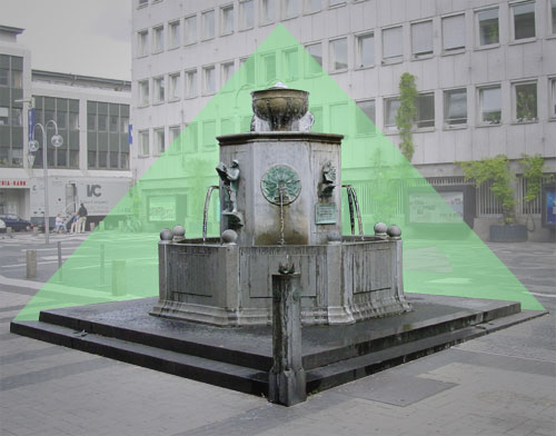 Der Brunnen ist hervorgehoben und mit einer grüne