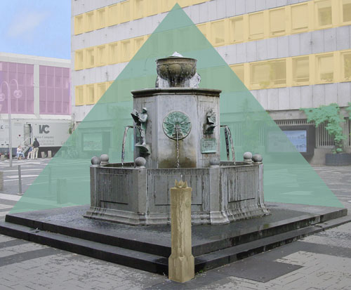 Der Brunnen ist hervorgehoben und mit einer Struktur