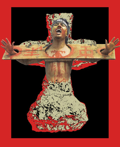 Der protestierende Tibeter ist der Tageszeitung entnommen