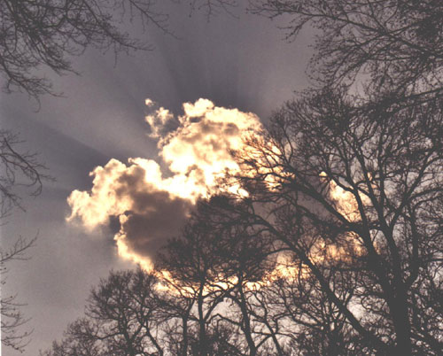Das Sonnenlicht durchstrahlt die Wolke und bildet dabei eine Strahlenkorona.