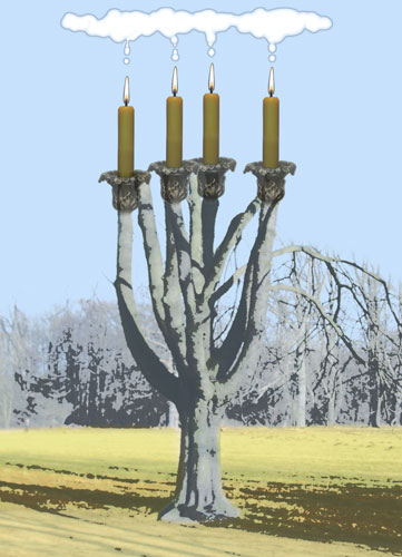 entblätterten Kastanienbaums mit einem Kerzenleuchter drängte