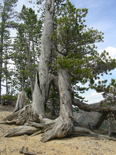2 alte Kiefern (beide oben abgebrochen), die sich