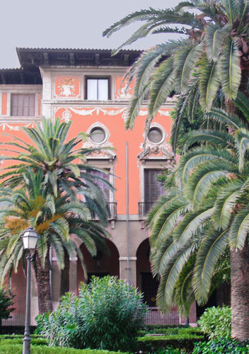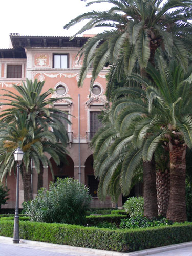 eines edlen Stadthauses hinter Palmen in Palma de Mallorca