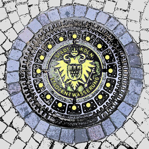 Bildbearbeitung                  Kanaldeckel   der Stadt Köln, Stadtentwässerung             Foto