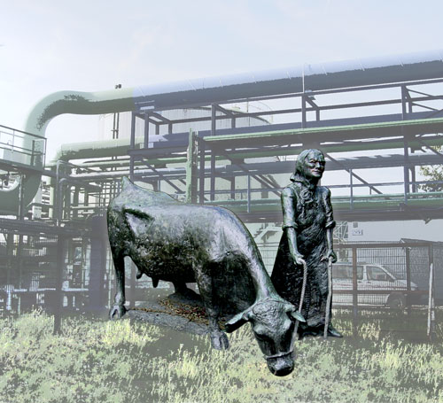 ihre Verdrängung wehren und die Kuh ahnt nicht, wie die Umweltverschmutzung